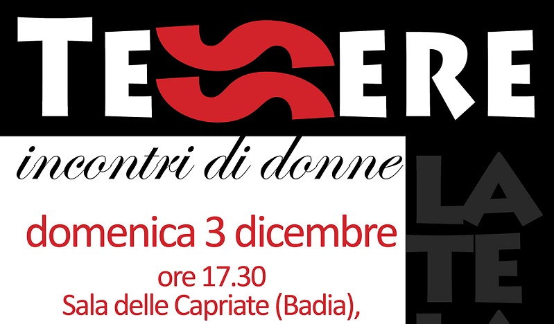 Domenica 3 dicembre, alle 17,30 presso la Badia di Castelbuono, Donna Sapiens continua il percorso di approfondimento sulla cultura al femminile, inaugurando una serie di appuntamenti definiti “Tessere”. Il richiamo al mosaico è evidente ed immediato: ogni tessera di un mosaico è diversa dall’altra ma ognuna è indispensabile per comporre il disegno. Un altro richiamo, poi, è quello al verbo tessere, con l’intento di ricordare a tutti/e come la trama di un tessuto si componga di percorsi ed incroci, di intrecci e nodi, metafore di un mondo di relazioni che Donna Sapiens vuole proporre come artigianato delle idee ed officina del fare.