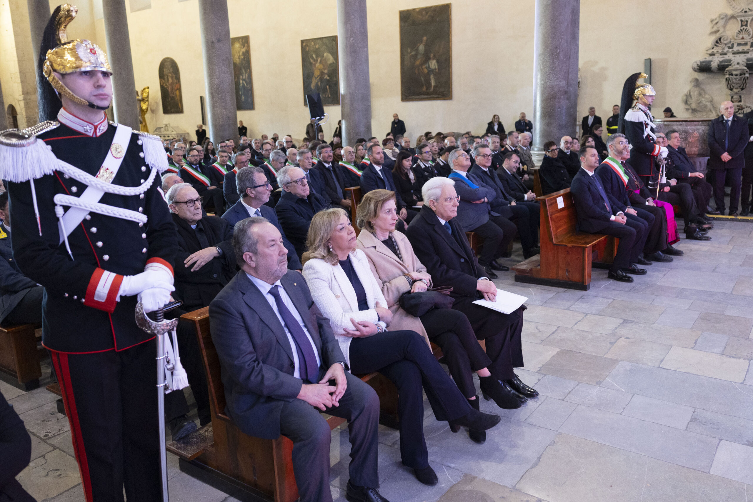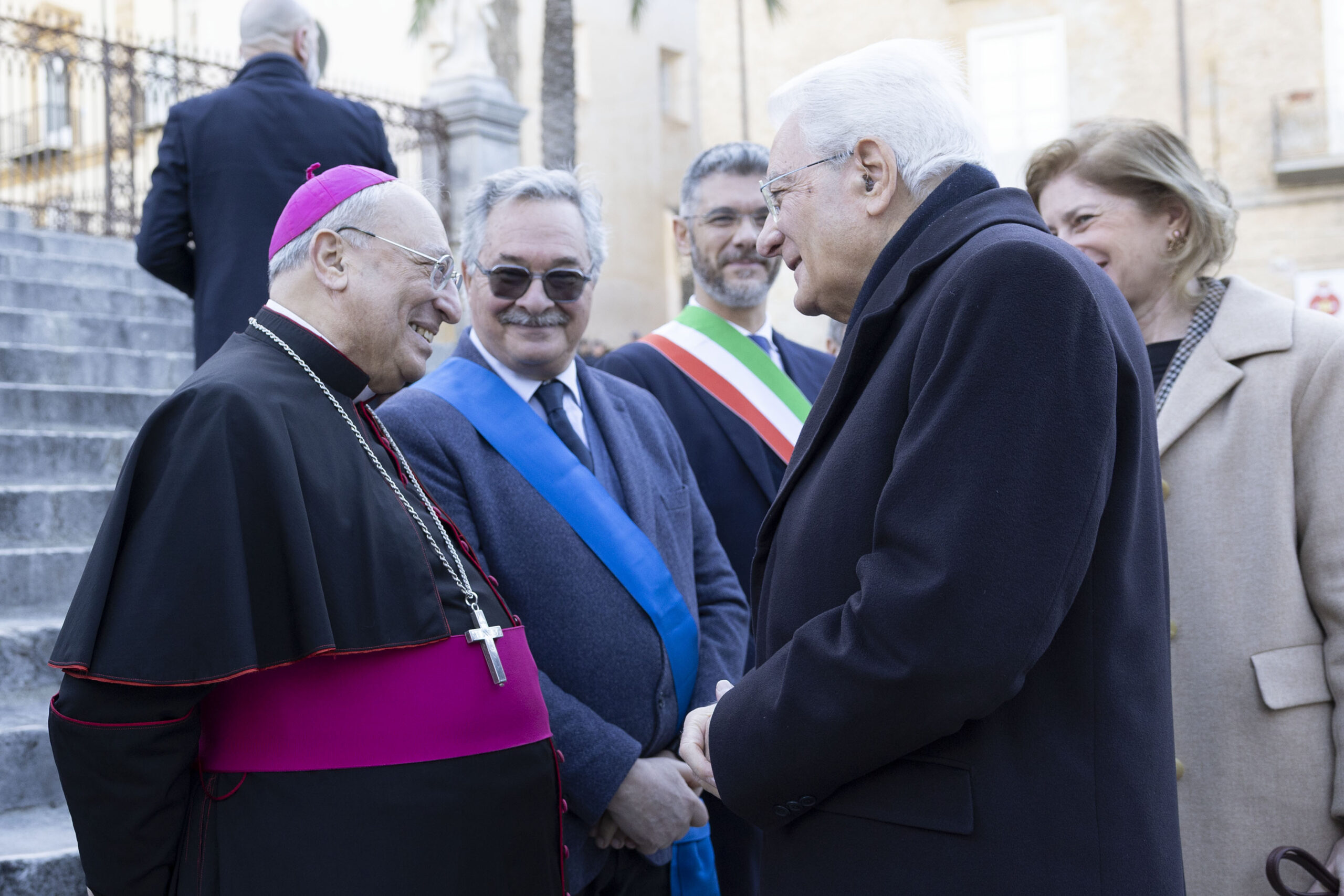 Il Presidente Mattarella è giunto a Cefalù accompagnato dalla figlia Laura ed è stato accolto ai piedi della scalinata del Duomo dal sindaco Daniele Tumminello, dal vescovo di Cefalù monsignor Giuseppe Marciante, dall’assessore regionale ai Beni culturali e all’Identità siciliana Francesco Scarpinato, dal prefetto di Palermo Massimo Mariani e dalla vicepresidente dell’Assemblea regionale siciliana Luisa Lantieri. All’interno della Cattedrale, gremita in ogni ordine di posti, era presente anche l’arcivescovo di Palermo monsignor Corrado Lorefice.