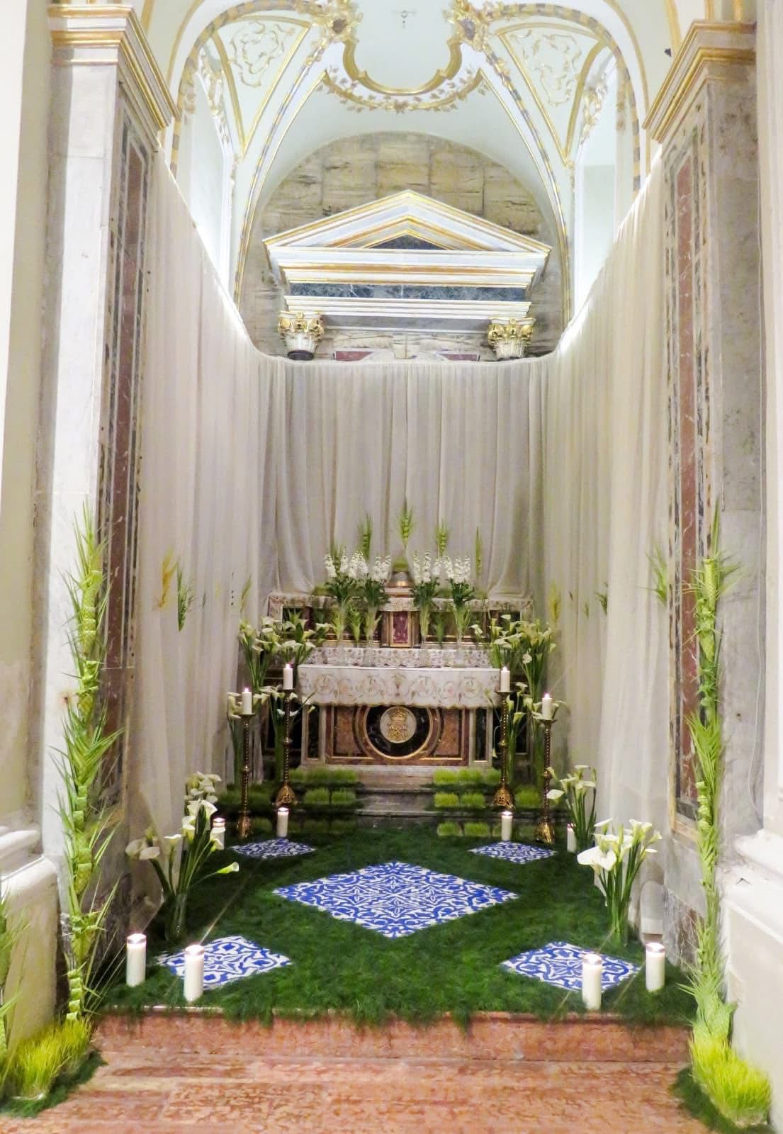 A Caltavuturo, artigiani e fedeli contribuivano alla realizzazione dei sepolcri con grande cura. Nella Chiesa di San Giuseppe, ad esempio, venivano utilizzati dipinti su tela che raffiguravano scene come l’ingresso di Gesù a Gerusalemme, l’Ultima Cena e la deposizione nel sepolcro. Alcune di queste opere sono ancora oggi conservate dalla famiglia Faulisi, insieme a disegni realizzati con sabbia colorata. Le chiese venivano allestite come veri giardini: rami, erbe e arbusti raccolti in campagna, fiori e candele contribuivano a creare un’atmosfera intensa e suggestiva. All’ingresso venivano posti tendoni per oscurare gli ambienti, aumentando il senso di raccoglimento. I fedeli visitavano questi luoghi in silenzio, vivendo un momento di profonda partecipazione emotiva. Nonostante il termine “sepolcro” sia ancora molto usato, il significato religioso è più profondo: il Giovedì Santo non si ricorda solo la morte di Gesù, ma si celebra soprattutto l’Eucaristia, segno della sua presenza viva.