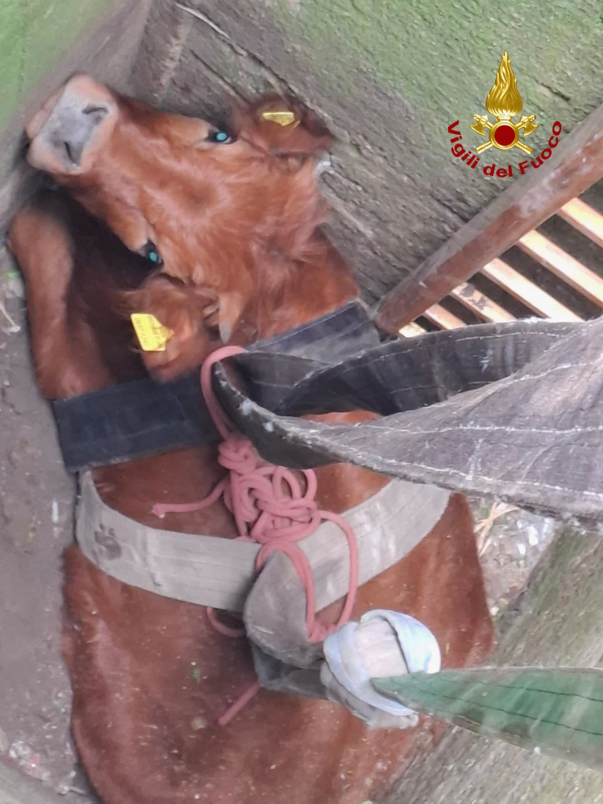 Dopo un intervento delicato, il vitello è stato recuperato e tratto in salvo, senza gravi conseguenze