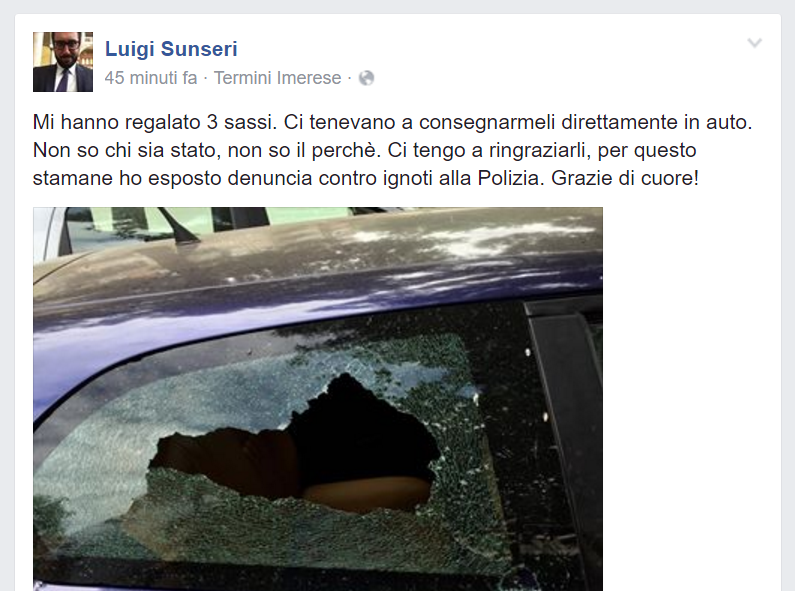 Distrutto il finestrino posteriore della Alfa 147 intestata al fratello dell'esponente grillino